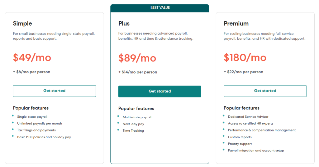 The page also says all paid plans include: